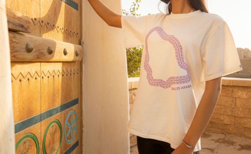 قميص من القطن مطرز بخريطة المملكه بلون الخزام