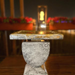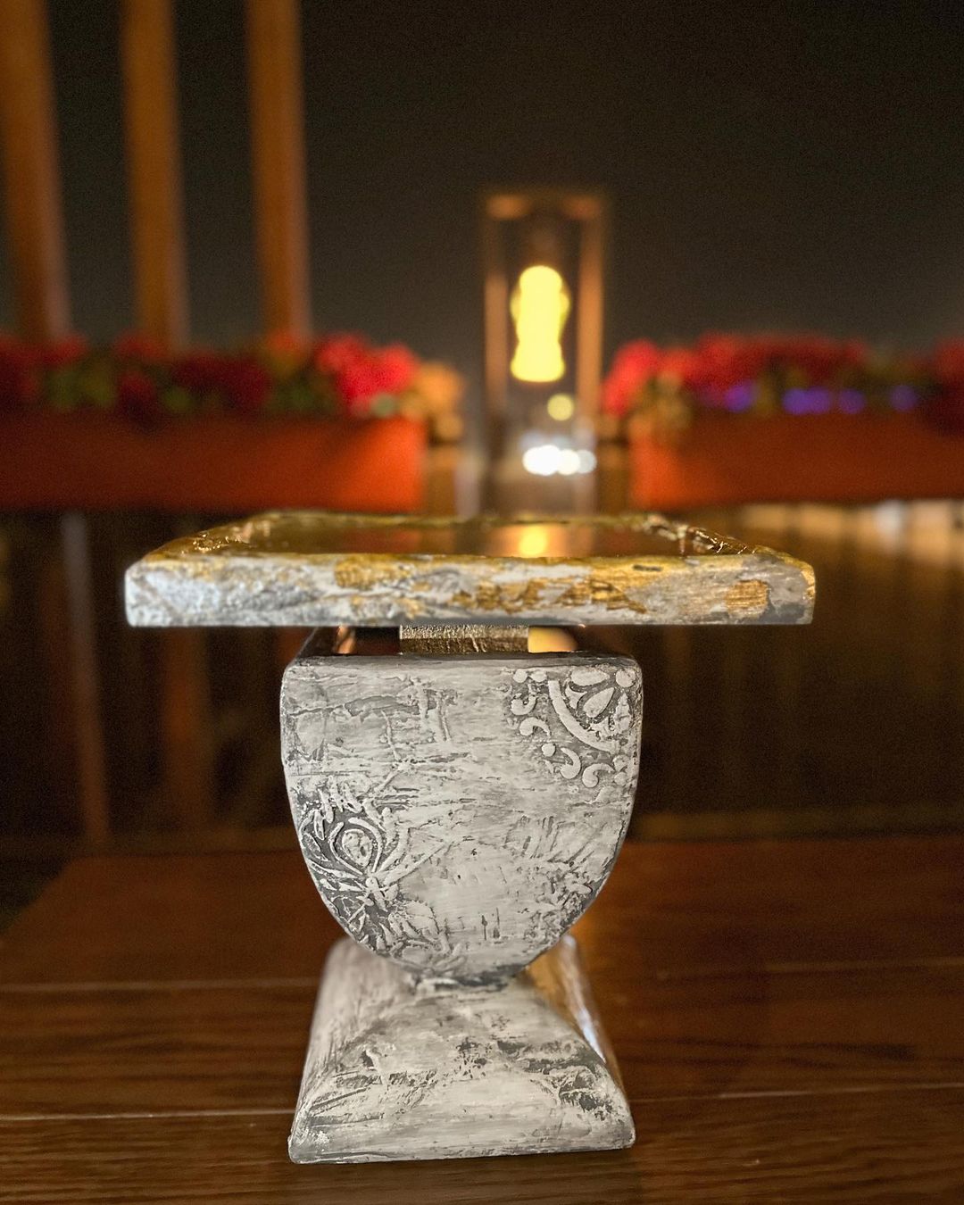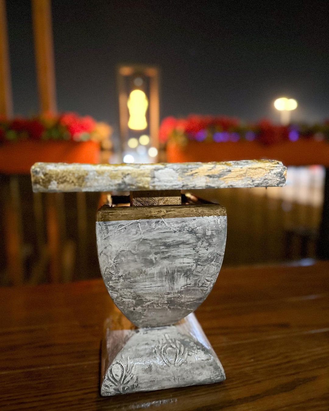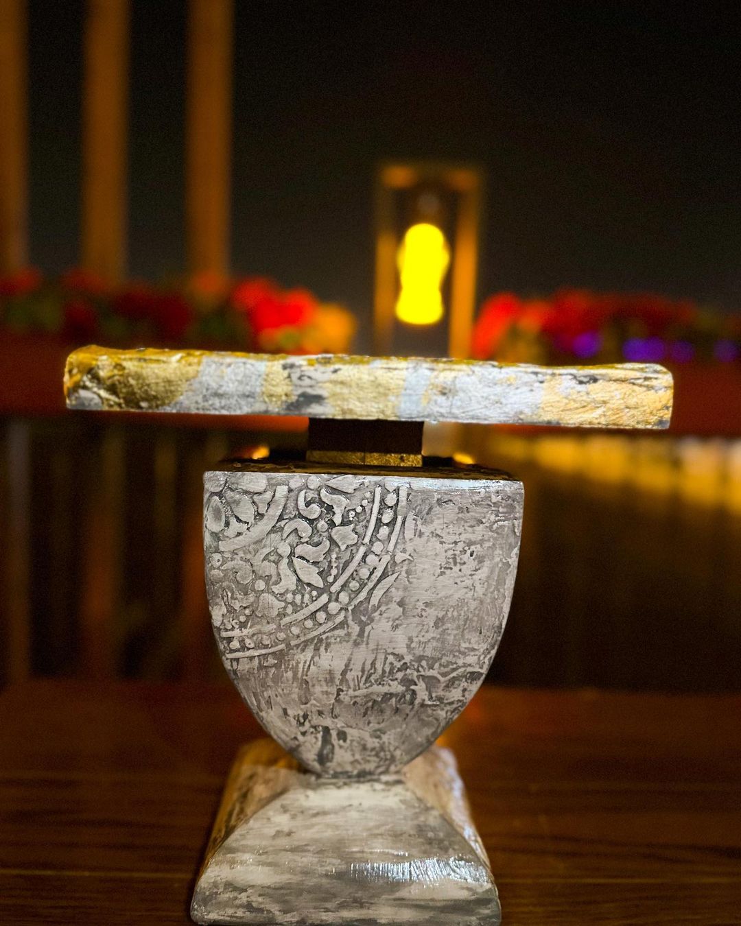 مع تفاصيل نقوش تقليدية تعكس الثقافة والتراث السعودي. تمتاز بتصميم فريد وأنيق يجمع بين الأصالة والفخامة. وما يميزها أكثر هو تطعيمها بورق الذهب، مما يضيف لمسة من الفخامة والتألق.