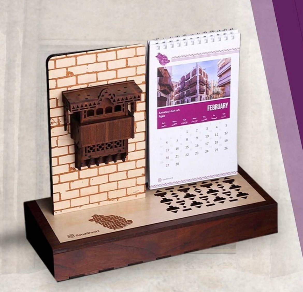 تقويم خشبي لمجسم المشربيات الحجازية وهو الجزء البارز من الروشن للبيوت الحجازية والي تتميز بالزخارف الخشبية المبطنه بالزجاج الملون